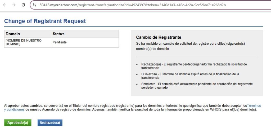Aceptar el Cambio de Titularidad de tu Dominio